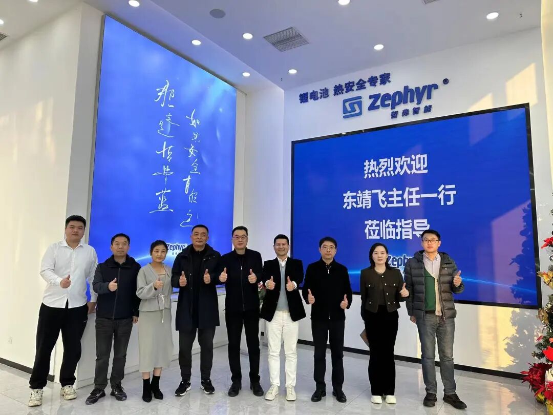会议结束后,东靖飞主任一行莅临哲弗考察,参观了哲弗工业4.0智能制造车间、全栈式锂电池热失控实验室、企业展厅。东主任对哲弗在锂电池安全方面展现出超群的专业水平表示高度认可,对锂电池安全技术研发、电芯测试能力、实体火验证能力等方面的卓越水平表示高度肯定,对车间自动化水平、质量管理水平、创新能力表示高度赞扬。他指出,新能源是国家战略性新兴产业,作为国内领先的锂电安全研发生产企业,哲弗应扛起责任大旗,掌控技术话语权,为新能源产业安全发展保驾护航。作为我国首张电动汽车全氟己酮锂电池火灾抑制装置的《消防产品技术鉴定证书》的获得者,哲弗将继续在新能源汽车、储能、换电、互联网数据中心等锂电池安全领域不断创新,努力占领新能源安全领域世界制高点。